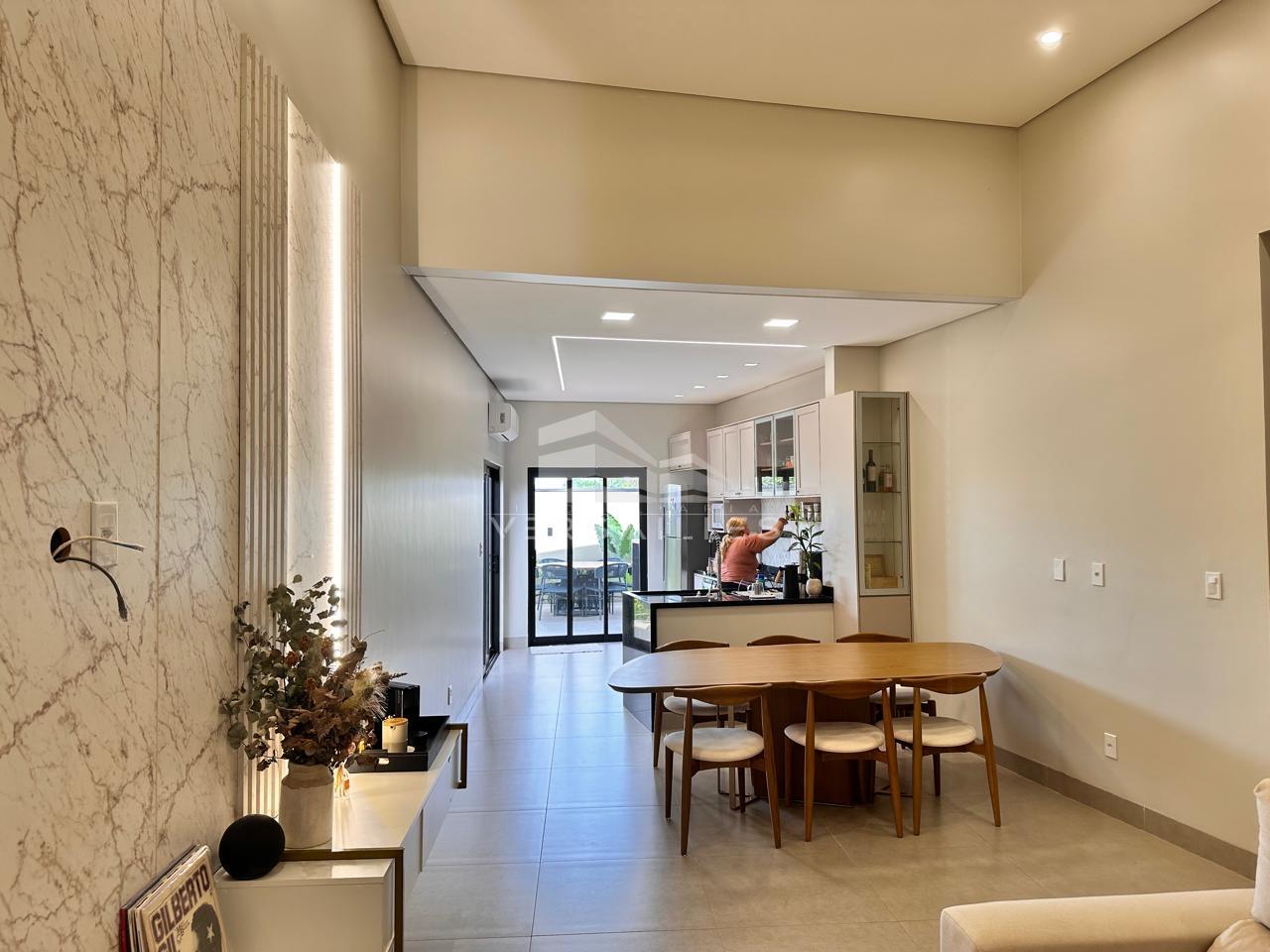 São 3 suítes, sendo a master com closet. Todos os quartos tem entrada independente pelo corredor, com acesso à piscina, sem precisar passar por dentro da casa. Piscina hidromassagem e cascata, além de uma iluminação sofisticada. Ao lado da piscina, uma ótima área gourmet com churrasqueira e muito espaço. A casa tem área de serviço, corredores laterais, móveis planejados por toda casa, trazendo sofisticação e modernidade. São quase 200m² de construção de alto padrão. Iluminação em LED e toda preparada para instalação de energia solar. climatizada e mobiliada.